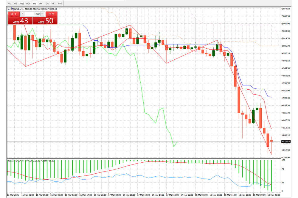 2026年3月19日 FXCG – 黄金(XAU/USD)行情分析( 2026/03/19) 一、盘面概况当前黄金(XAUUSD)1 小时图显示,价格自高位5030 附近开启单边下行趋势,最低触及4812 Continue Reading